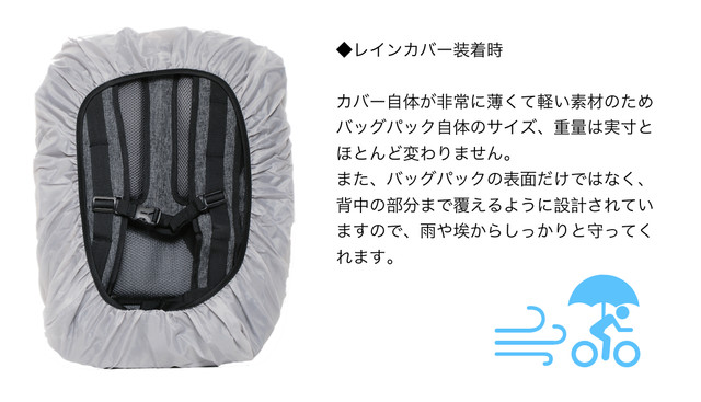 ・レインカバー : ホワイト(バッグパック底に付属)