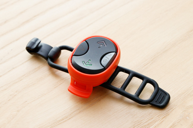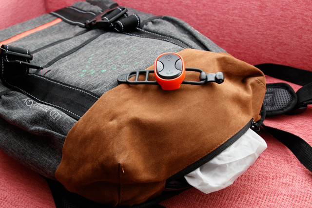 (画像左:ハンドル脇に取り付けるリモコン、右:バックパックに収納するLED)