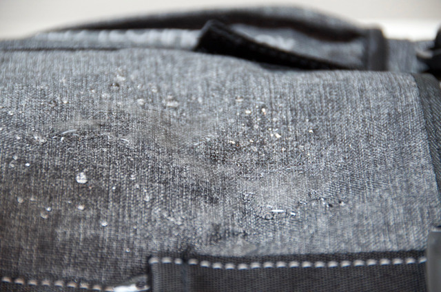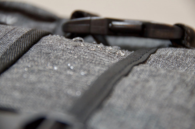 バッグ全体が撥水加工されたポリエステル素材なのですが、さらにバックパックのボトム部分に収納されているレインカバーで覆うことでスウェード部分、大切な荷物を水滴から守ります。