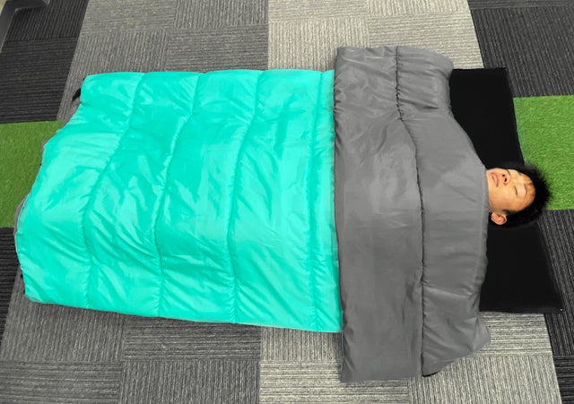 一体化させれば寝袋として、別々で使えばブランケットとしても使えます。