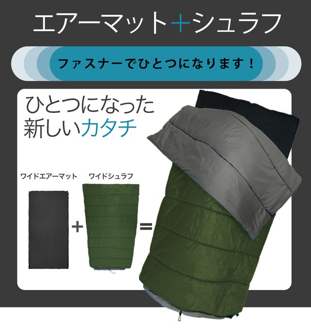 - エアーマットとシュラフがファスナーでひとつに!