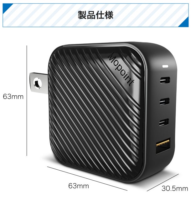- 窒化ガリウム(GaN)テクノロジー搭載で高効率で強力な充電器