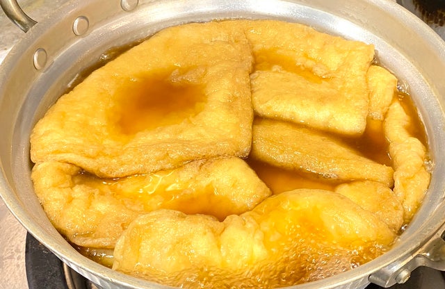 この再仕込み醤油を仕上げに加えることで店主森田のねらい通りのきつねあげが完成しました。「再仕込み醤油がいい仕事をしてくれて一気に味がまとまったね」