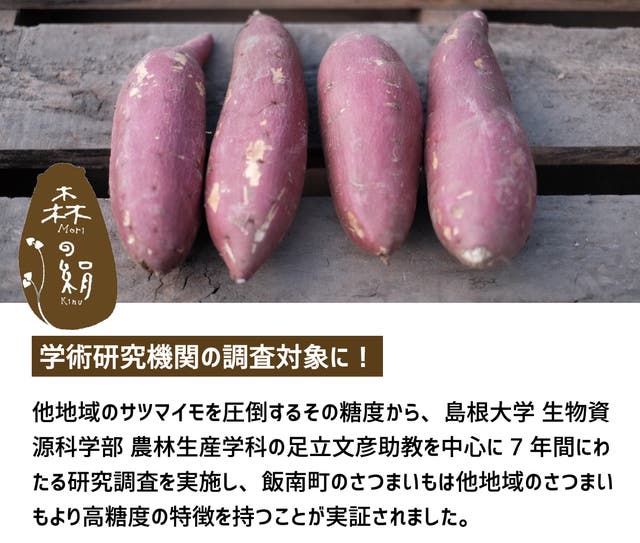 ”森の絹”とは島根県飯南町で育てられた 地域ブランドの美味しいさつまいもです。