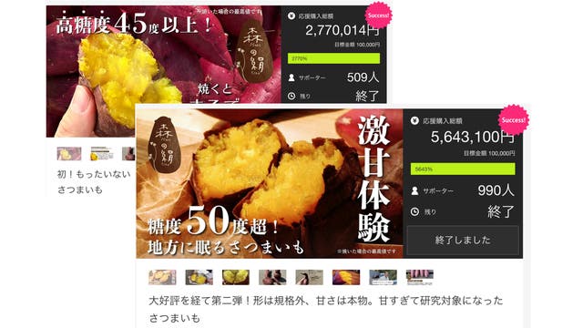 第一弾では「紅はるか」、そして前回は品種違いの「シルクスイート」では目標額5643%達成、900名を超える多くの皆様に応援購入いただいきました!