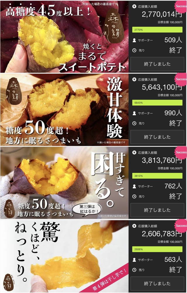この自慢の美味しいお芋を多くの方に応援購入いただき、なんとMakuake累計サポーターは約2,824名になりました!日本一イメージが控えめな県からのお芋を多くの方に知っていただき嬉しいです!