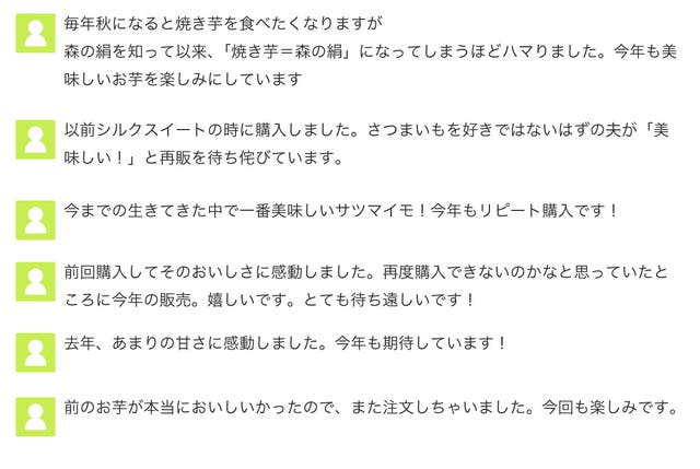 これまでに「森の絹」を応援購入いただいた多くのお客様から、嬉しいお声をたくさんいただいています。