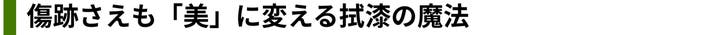 監修:塩安漆器工房、坂本雅彦氏。傷跡を「艶」に変える、拭漆の魔法。