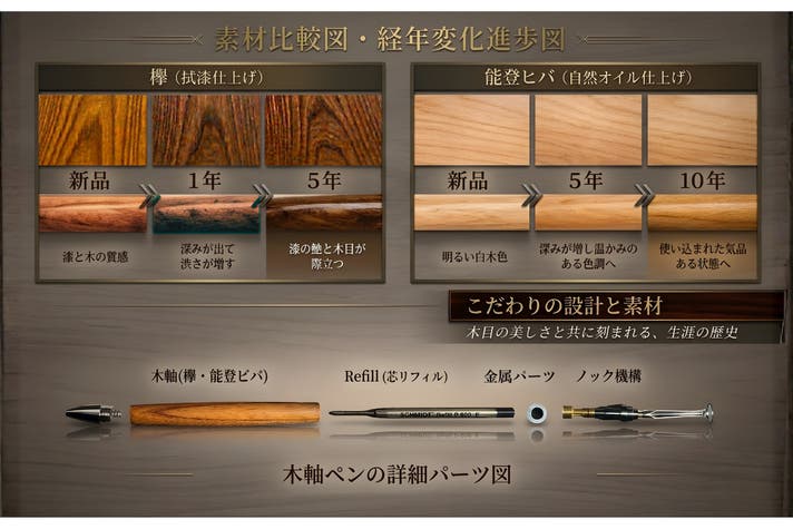 【Makuake割】能登ヒバ ボールペン 自然オイル仕上げ