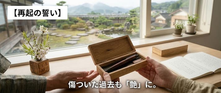 被災し、一度はすべてが終わりではありません。泥をかぶり、傷ついた古材が、職人の手によって一生モノのペンへと生まれ変わったように、あなたの傷跡もまた、これからの輝きの糧になります。