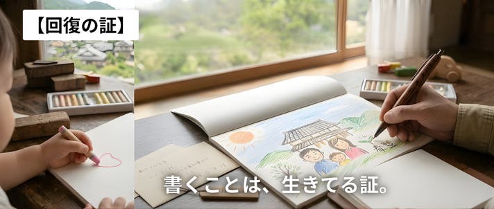 震災を越え、再びペンを握れるようになったその手。何気ない日記の一歩、誰かと交わす手紙。子供と一緒に描く未来の図。