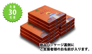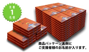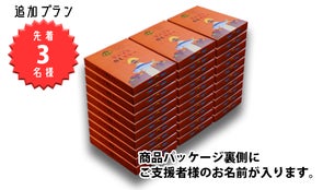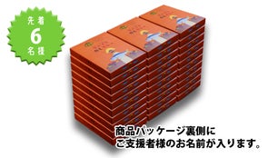 ・商品パッケージ裏側に大サイズで支援者様のお名前(ニックネーム、企業名可)がはいります。記載を希望される名前を全角8文字以内で記入してください。