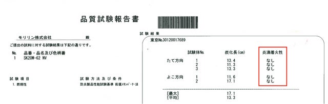 ( 審査機関において防炎基準の検査を行い防炎効果が認められています)