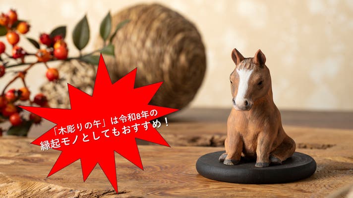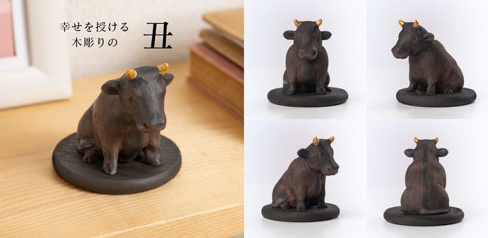 丑(うし)年生まれのあなたには、幸せを授ける「木彫りの丑」。