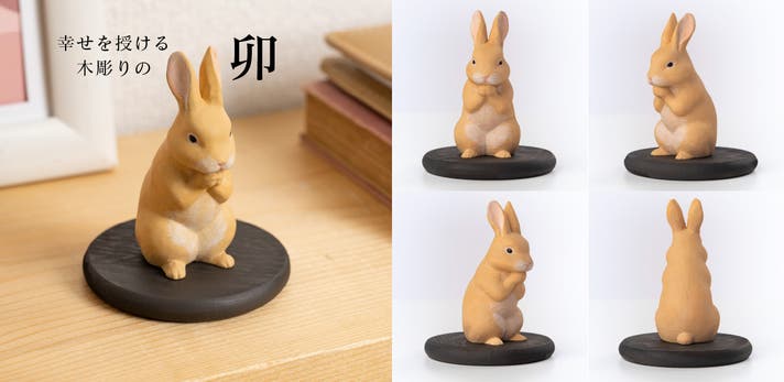 卯(う=うさぎ)年生まれのあなたには、幸せを授ける「木彫りの卯」。
