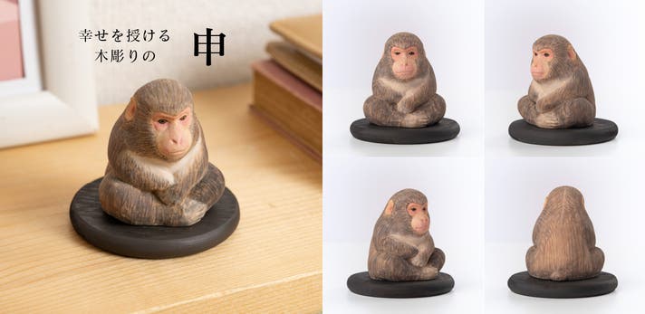 申(さる)年生まれのあなたには、幸せを授ける「木彫りの申」。