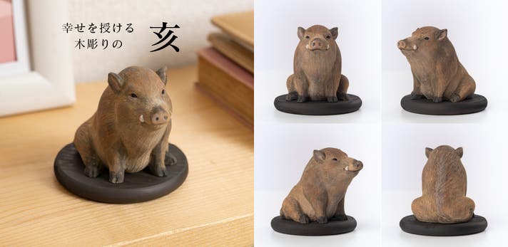 亥(い=いのしい)年生まれのあなたには、幸せを授ける「木彫りの亥」。