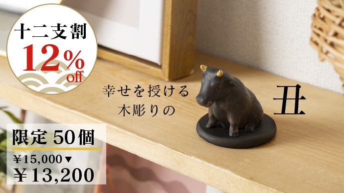【十二支割 12%Off】幸せを授ける「木彫りの丑」
