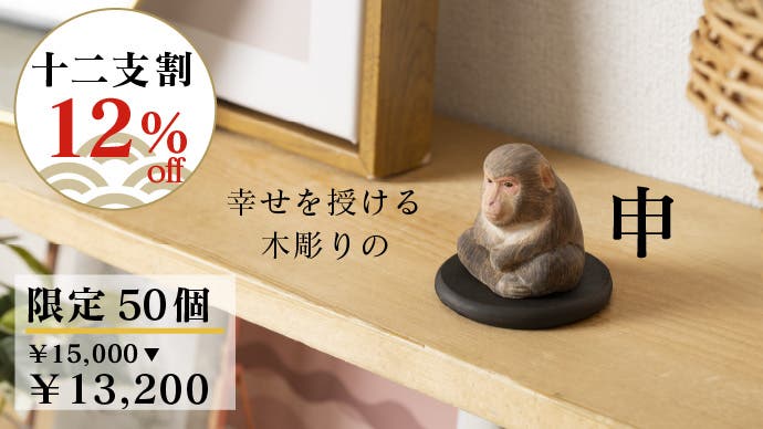 【十二支割 12%Off】幸せを授ける「木彫りの申」
