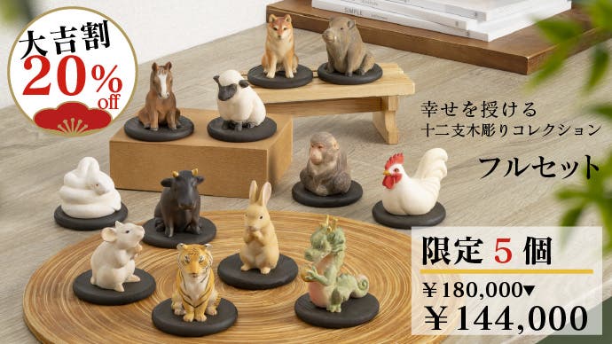 また、『幸せを授ける十二支木彫りコレクション』の中からご自身の干支を選んだ後で、毎年の干支をその一年の縁起物として揃えていくこともおすすめします。