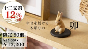 【十二支割 12%Off】幸せを授ける「木彫りの卯」