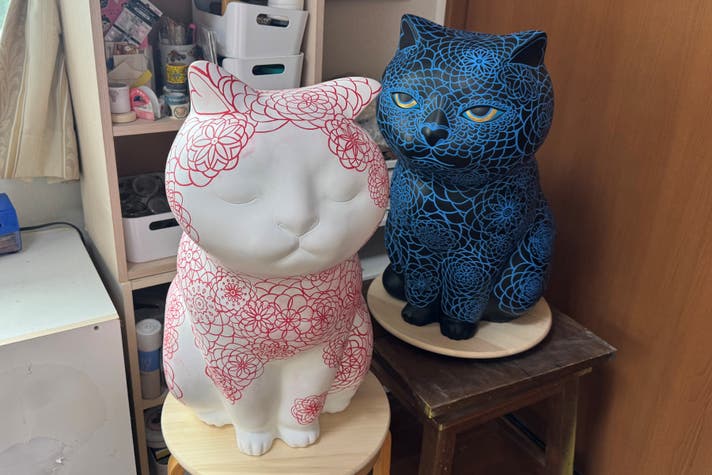 エサシ:やっぱりカオデカクンという猫の形が好きなので、私の作る猫(の作品)はみんなあの形なんです。