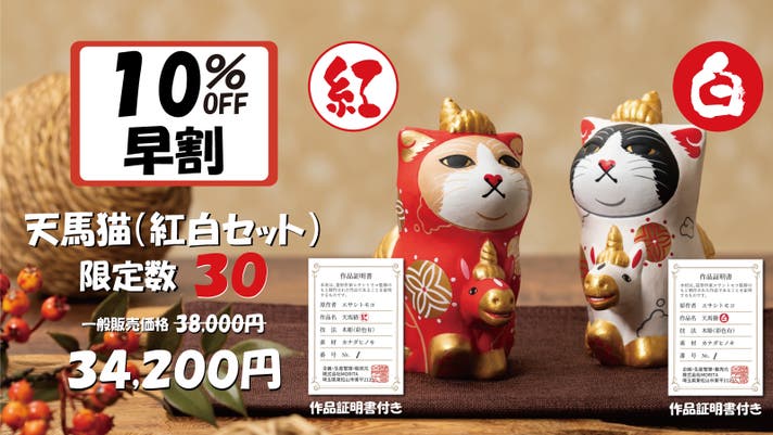 【超早割20%OFF】天馬猫(紅白セット)+ディスプレイケース