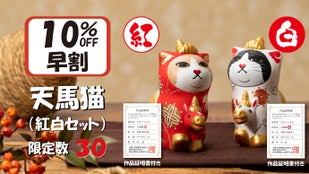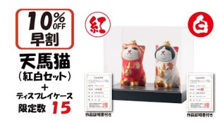 単品販売はもちろん、お得な紅白セットや『天馬猫(てんまにゃん)』を美しく鑑賞できるディスプレイケースセットなど多彩なリターンをご用意いたしました。