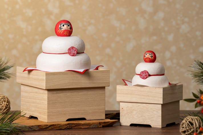 - 鏡餅の上に縁起だるま発祥の地で開眼された「だるま」が鎮座! 福々しさ倍増!!