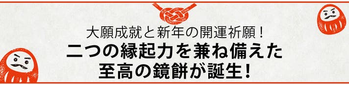 そのため少林山達磨寺で開眼供養を賜った『達磨 木彫り鏡餅』は、年神さまと縁起だるまという二つの縁起パワーを兼ね備えた至高の鏡餅と言えるのです。