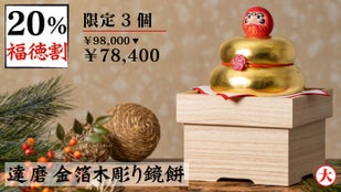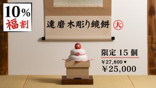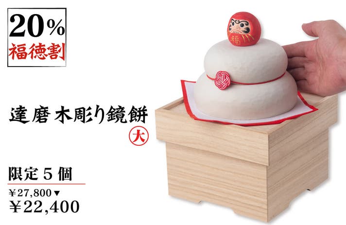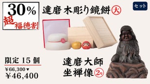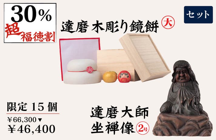 一般販売価格:税込66,300円【達磨木彫り鏡餅(大):税込27,800円+達磨大師坐禅像(2号):税込38,500円】