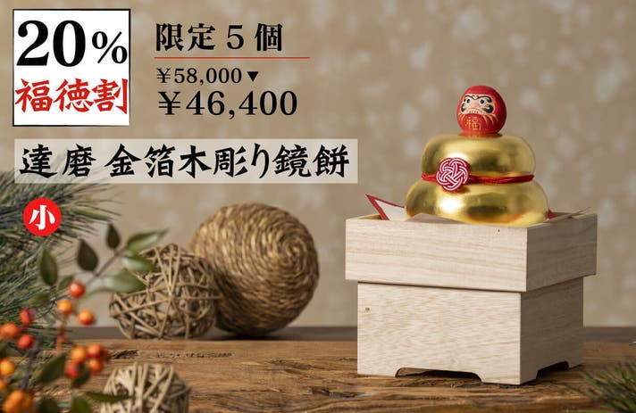 【福徳割20%OFF】達磨 金箔木彫り鏡餅(小)