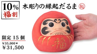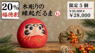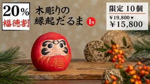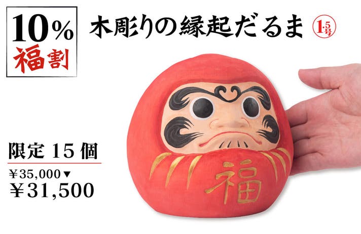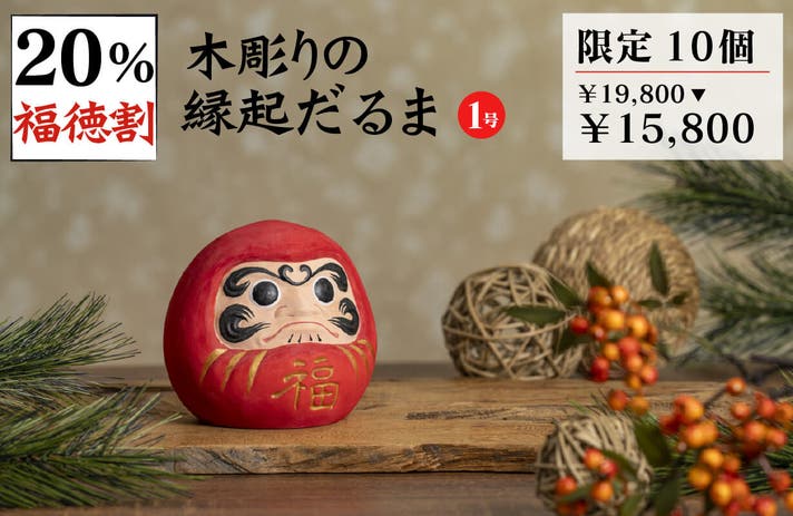 鏡餅に乗せる達磨ではなく、本格的な達磨が欲しい! そんな方のために、愛らしさの中に威厳も感じられる『木彫りの縁起だるま』もご用意しました。