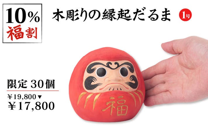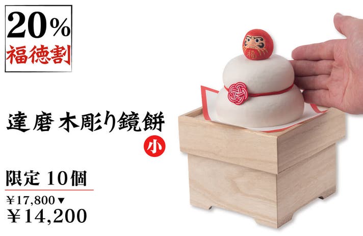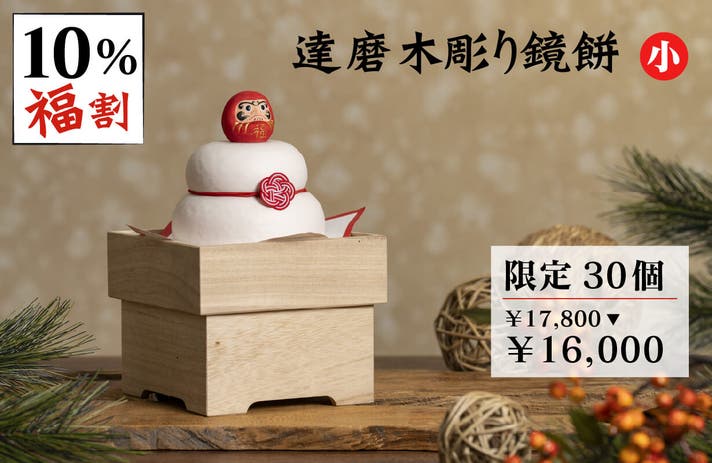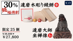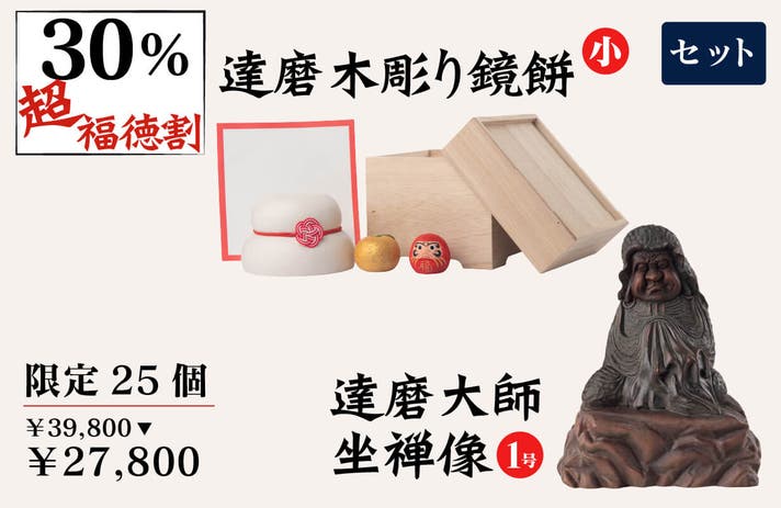 一般販売価格:税込39,800円【達磨木彫り鏡餅(小):税込17,800円+達磨大師坐禅像(1号):税込22,000円】