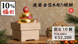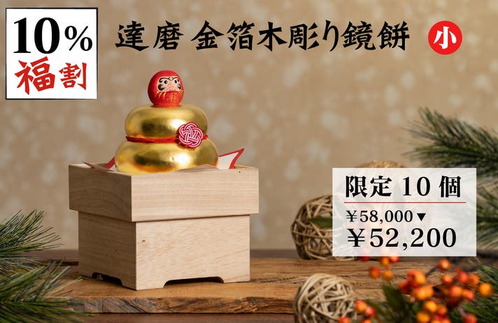 【福割10%OFF】達磨 金箔木彫り鏡餅(小)