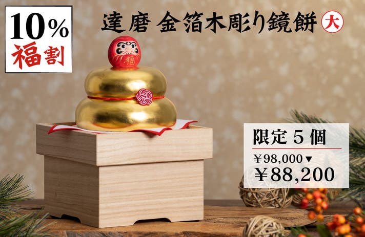 【福割10%OFF】達磨 金箔木彫り鏡餅(大)