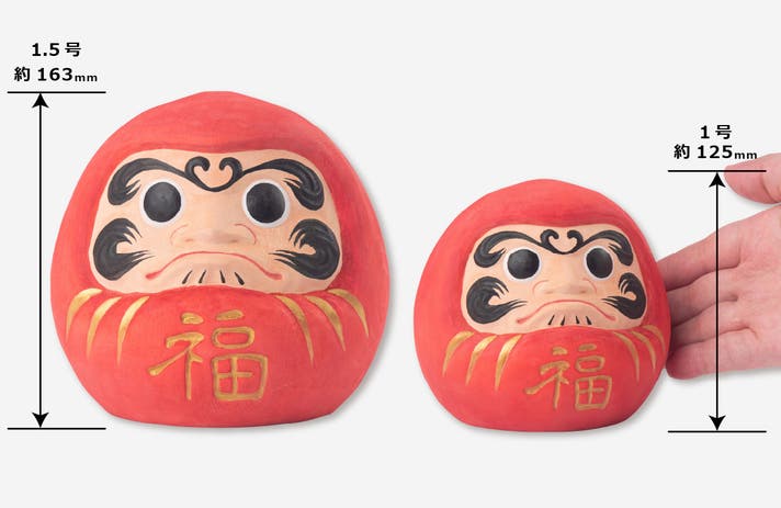 大願成就、開運招福、商売繁盛、金運招来、家内安全、必勝祈願など様々な願いを託すことで親しまれている縁起だるま。