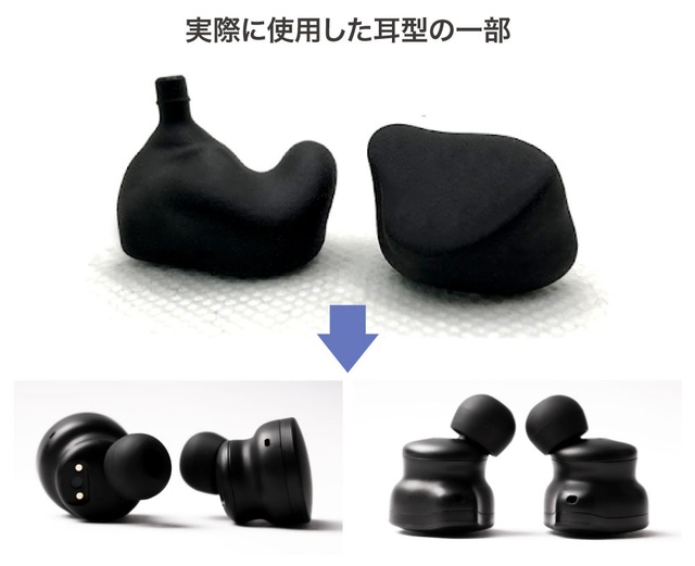 モーフのイヤホンは数100の実際の耳型に基づいており、そのいくつかの実際のサンプルを使い耳型を製作しました!