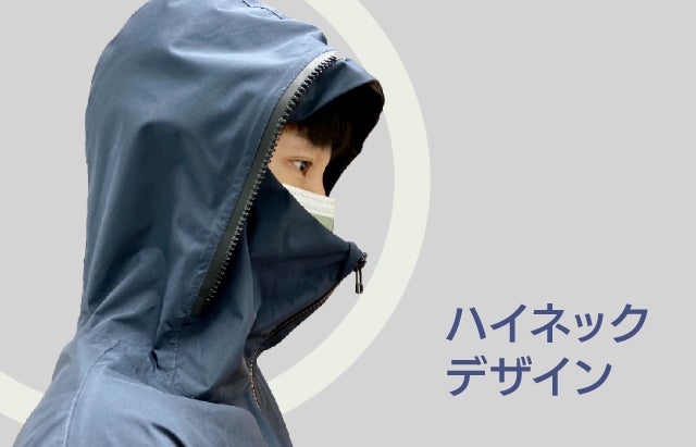 調整可能なハイネックデザインで、首にフィットし、鼻と口を保護します。