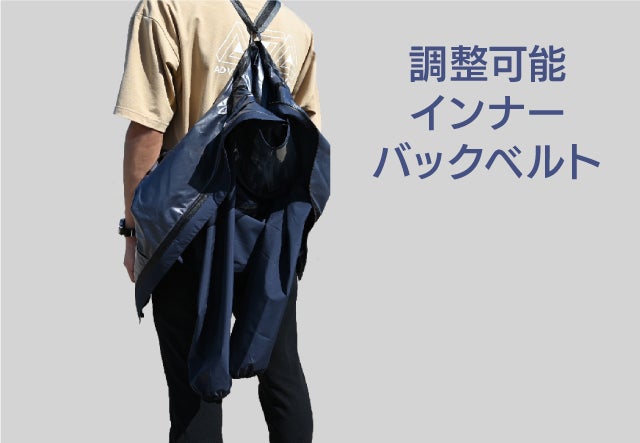 調整可能なインナーバックベルトがついているので、暑い時は気軽に脱ぎましょう!そして手で持つのではなく、背中にかけます!