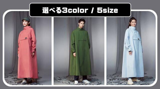 ロングコートタイプで背面磁石着脱式、自転車や原付バイク乗車時でも身体を覆いつくし、雨の侵入を完全シャットアウト!