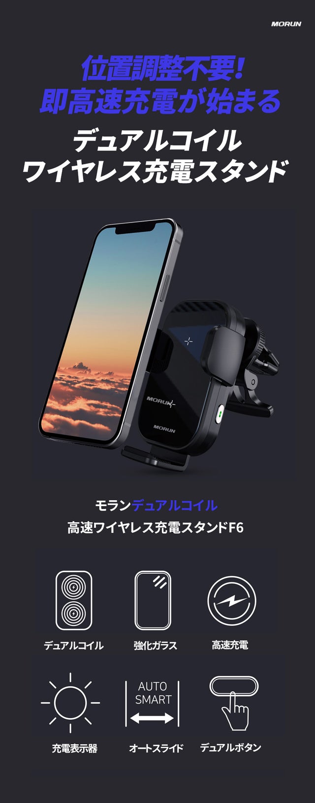 【早割 30%OFF】デュアルコイル高速ワイヤレス充電スタンドF6 1SET