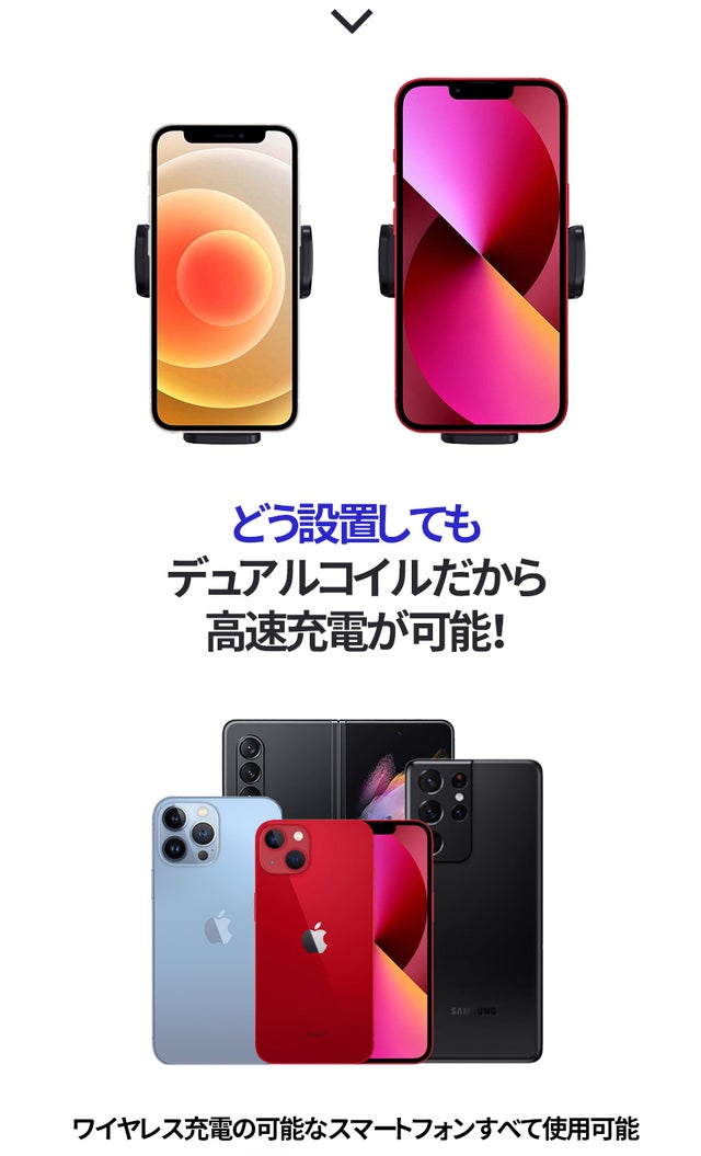 miniもMaxも折りたたみスマホも…どのサイズのスマホも即充電可能