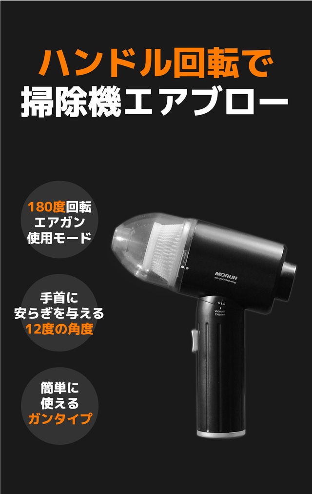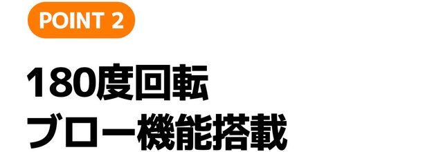 快適に取っ手を握ることができ、持ち手が回転しながら掃除やブロー機能の両方が快適に使用できます。 狭いスペースでも使いやすい!