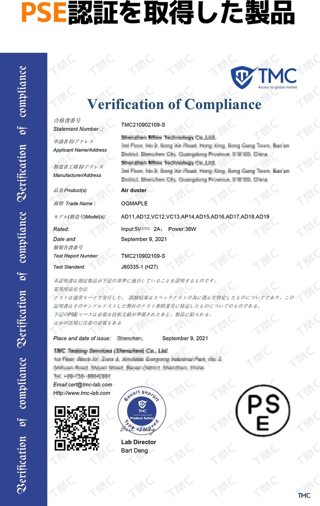 日本での使用も問題ないようPSE認証を取得した製品をお届けします。