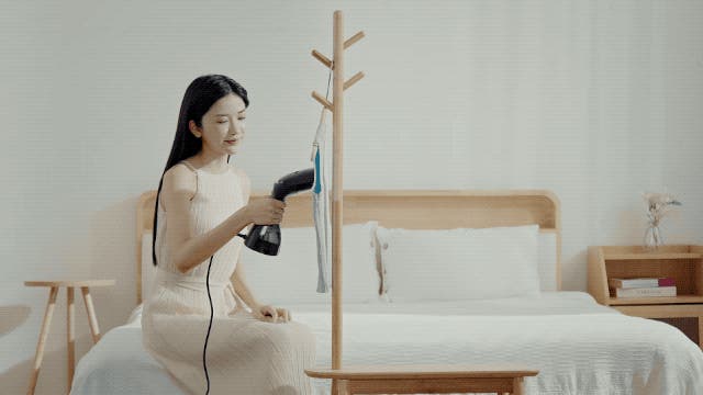 ハンガーにかけたままでも衣類にしっかり密着し、従来の衣類スチーマーのように衣類を引っ張る必要がないため、片手でも安全に操作でき、火傷のリスクも大幅に軽減します。