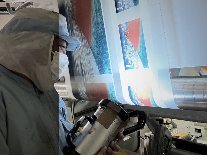 原画と同じように、色ごとに版を分ける「多色刷り」の工程をもとに、グラビア印刷でも同じ色数・構成で分版し、1色ずつ重ねて仕上げました。