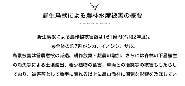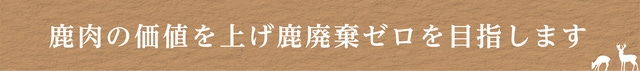 駆除され捨てられるだけの鹿廃棄をゼロに、命をありがたくいただく利用率100%を目指し、環境を守り次世代につないでいきたいと考えています。