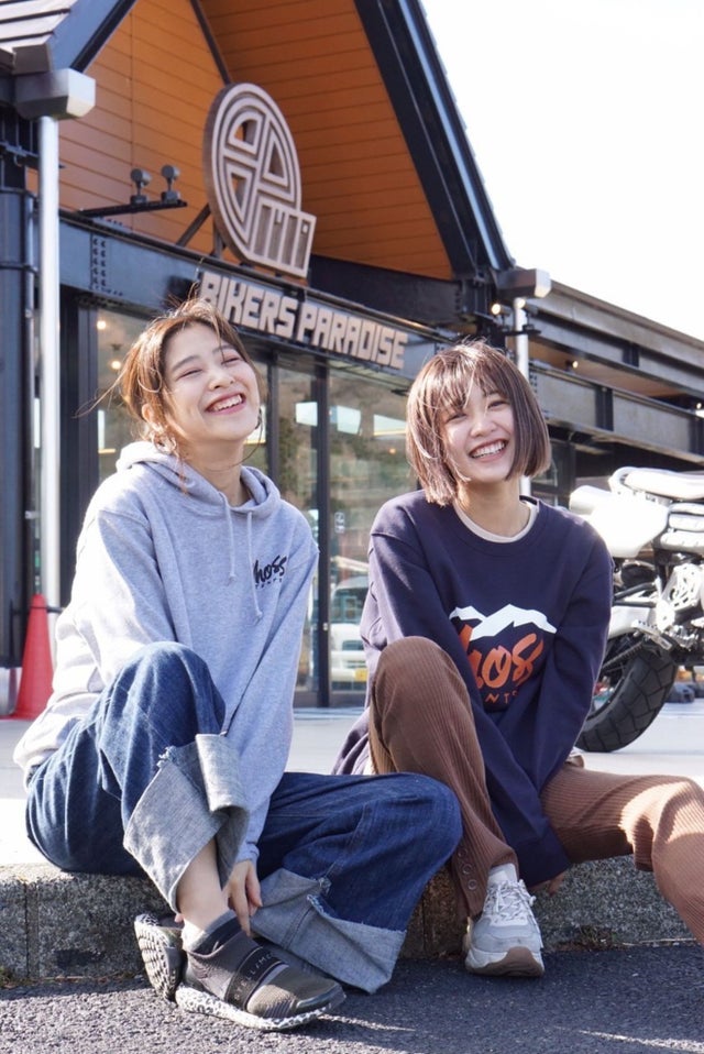(左)身長158cm Sサイズ着用 (右)身長179cm Lサイズ着用