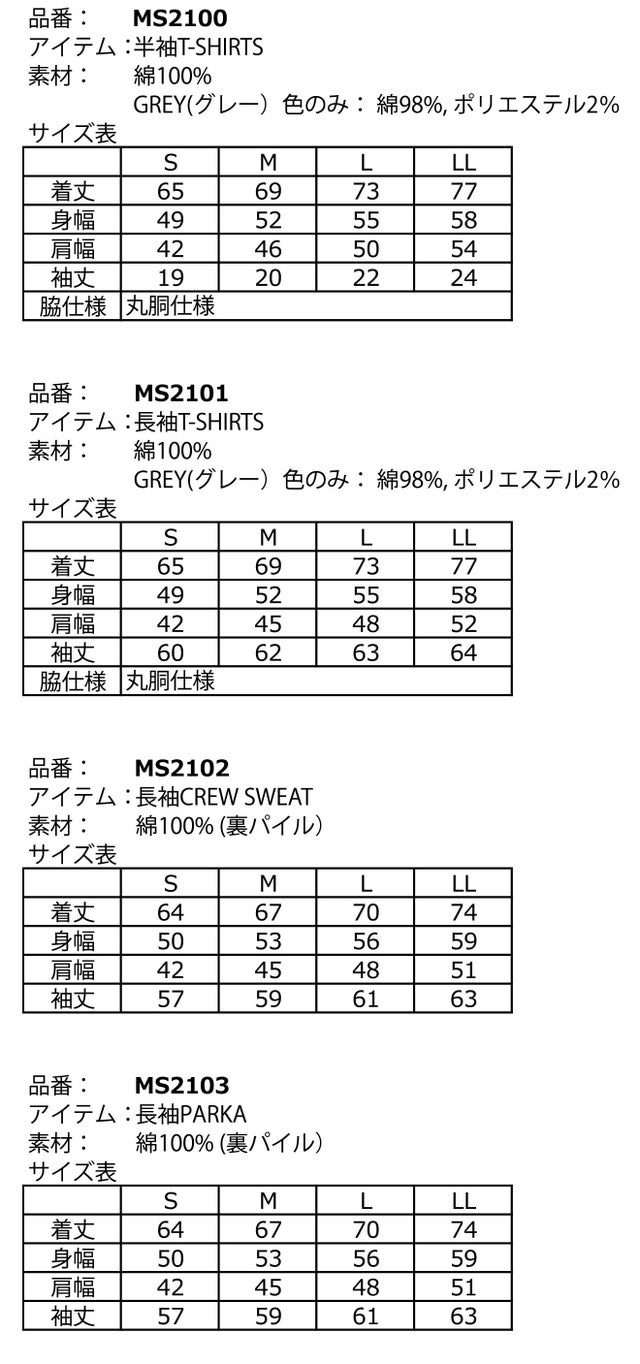 長袖T-SHIRTSは下記の4サイズよりお選びください